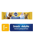 Formulado para perros de razas pequeñas, este snack tiene el tamaño ideal para sus mandíbulas. Su textura ligeramente abrasiva y forma especial contribuyen a una limpieza mecánica durante la masticación. Contiene ingredientes funcionales que ayudan a reducir hasta un 80 % del sarro con el uso diario. Viene en una presentación individual de 15.7 g, perfecta para uso ocasional, entrenamiento o prueba del producto.