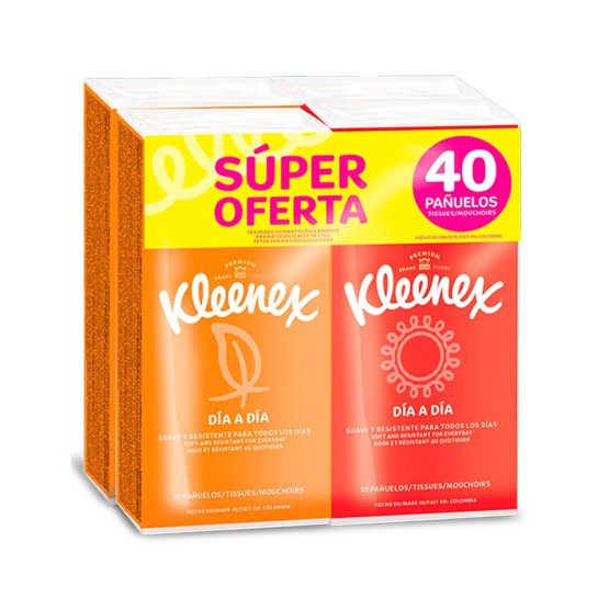 Pañuelo Facial Kleenex Bolsillo Precio Especial x 4 Un x 10 Pañuelos